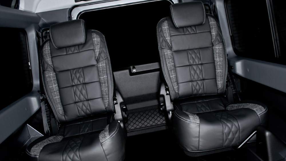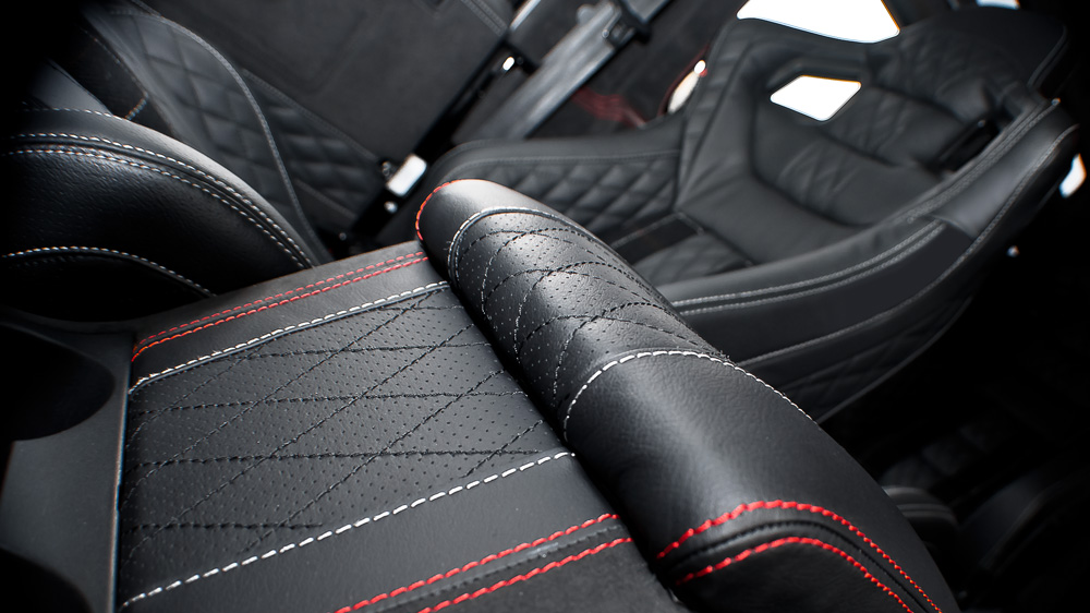 Land Rover Defender 90 original factory front seats and rear folding seats re-upholstered in quilted and perforated leather, with optional contrast stitching in a choice of colours. Additional colour and material options, including Alcantara and Harris Tweed, are available on request – please contact a sales...