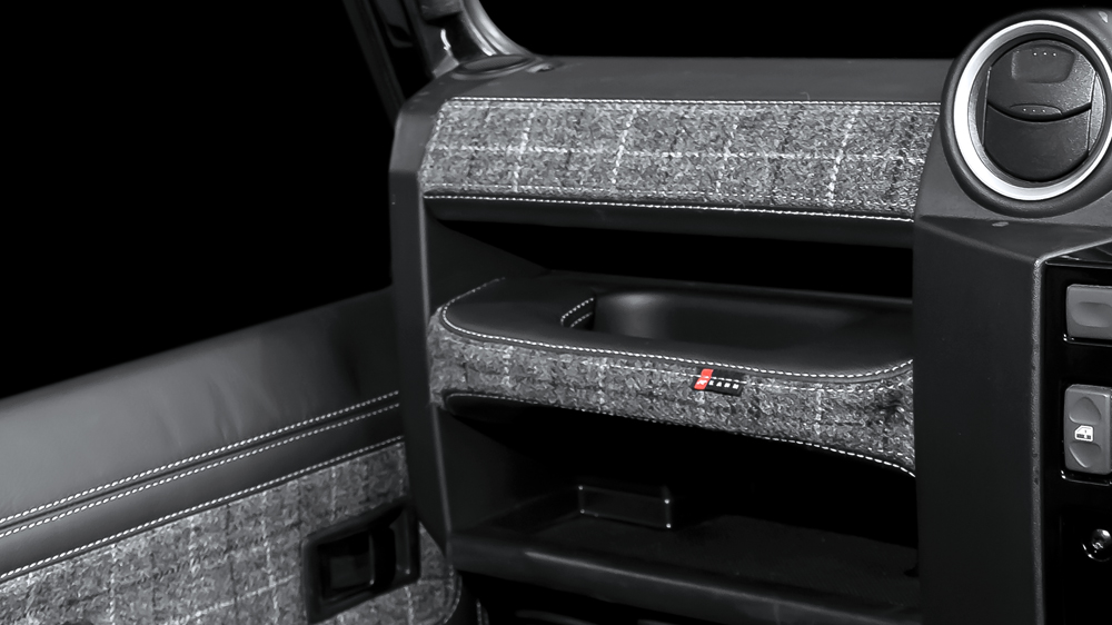Land Rover Defender Centre Glove Box re-upholstered in quilted and perforated leather, with optional contrast stitching in a choice of colours. Designed to complement your existing or Kahn leather interior. Suitable for Defender 90 and 110 models. Additional colour and material options, including Alcantara and Harris...